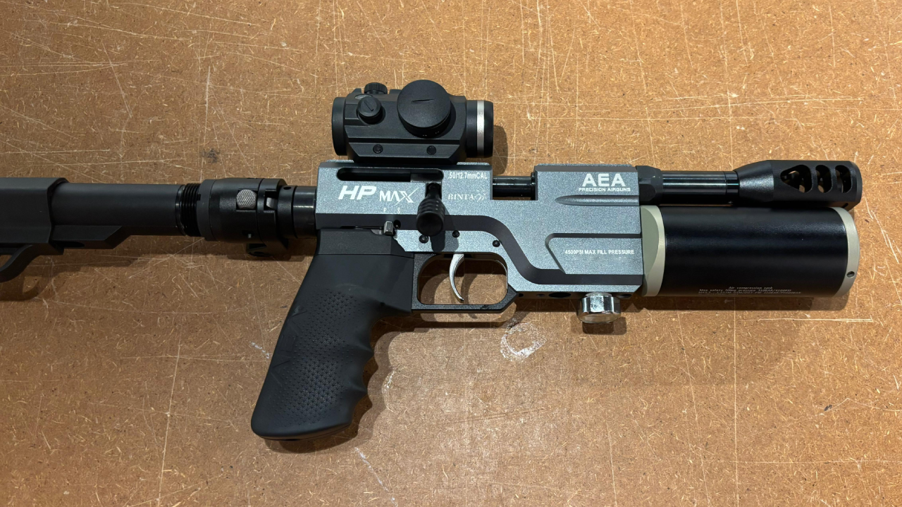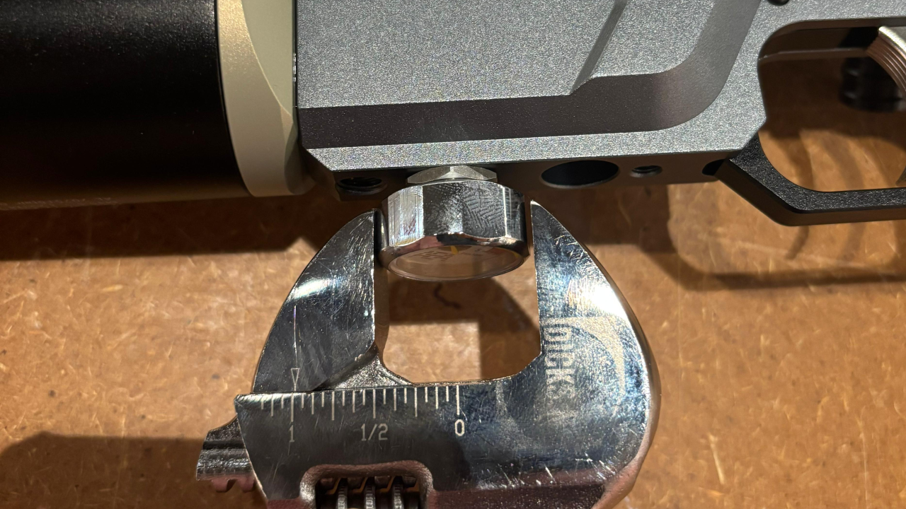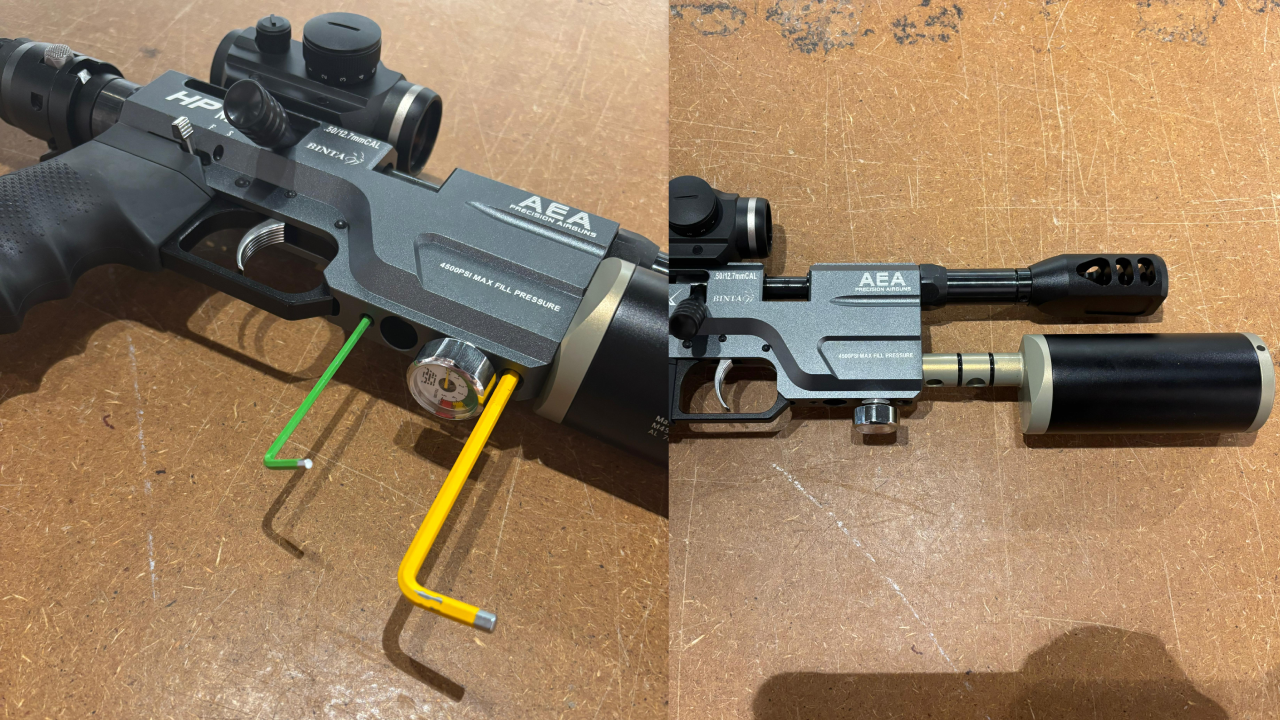 Als je aan een persluchtbuks (PCP) werkt, haal altijd eerst de druk van het apparaat. Dit doen we in stap 2.